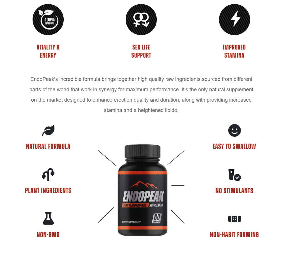 Endopeak is a thoughtfully formulated natural supplement created to support men’s daily energy, stamina, and overall wellness. It features a blend of eight carefully selected ingredients designed to help the body maintain healthy energy levels and physical performance, promoting a more active and confident lifestyle.